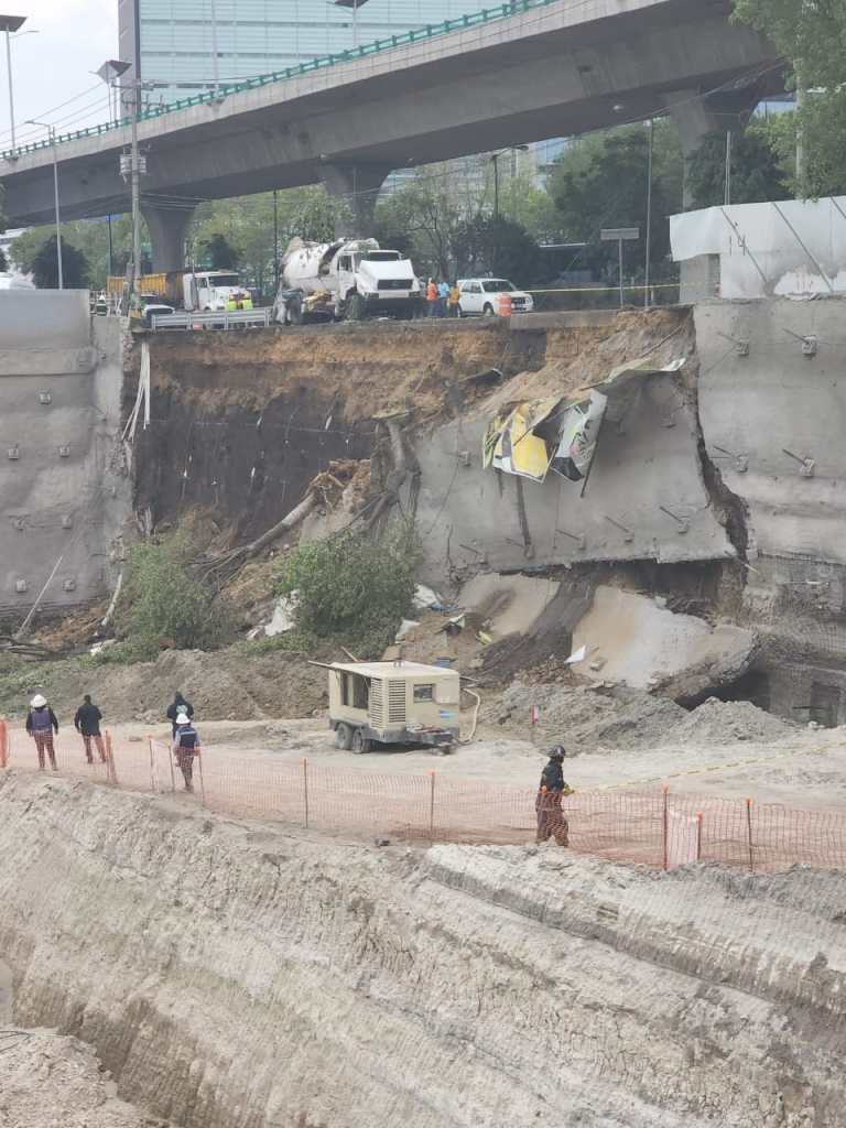 Se atendió a una persona que sufrió lesiones menores. Autoridades estatales y municipales, llegaron al lugar. Tlalnepantla, Méx.- Derivado de un deslizamiento de tierra, se produjo el derrumbe de un talud en una barda perimetral donde se realiza la construcción de una obra privada, elementos de Protección Civil, Seguridad Pública y del OPDM, se movilizaron de inmediato hacia el lugar para apoyar y controlar la emergencia. El desgajamiento que mide aproximadamente 40 metros lineales por 12 de profundidad, se originó probablemente por la humedad en la zona y las obras de excavación que se realizan. Los hechos se registraron a la altura de la colonia Valle Dorado en la lateral de Periférico en dirección sur, norte, donde los diferentes cuerpos de emergencia implementaron los protocolos pertinentes de manera inmediata, con la finalidad de prevenir alguna desgracia mayor. Se reportó un trabajador del área de limpias del municipio lesionado, el cual no fue de gravedad, quien fue atendido y posteriormente trasladado al hospital ISSEMYN, al tiempo que se evacuaron a 70 trabajadores de la empresa constructora a fin de evitar lesiones o pérdidas humanas, es importante señalar que no hubo personas atrapadas ni desaparecidas. De acuerdo a los protocolos, personal de tránsito municipal cerró el carril de extrema derecha del Periférico para establecer un dispositivo de seguridad y delimitar el área de riesgo, al tiempo se realizaron los trabajos de limpieza, remoción de tierra y material que pudiera representar una amenaza para los vehículos y sus tripulantes que transitan por la zona. Los trabajos de reforzamiento de la vialidad para que sea segura para los usuarios durará 72 horas, tiempo en el que será cerrada la lateral. Personal operativo de diferentes áreas del Ayuntamiento de Tlalnepantla, Protección Civil estatal, Junta de Caminos, quienes son responsables de la vialidad, así como los encargados de la obra, inspeccionan la zona del reblandecimiento de la tierra para verificar los riesgos y realizar las acciones correspondientes.