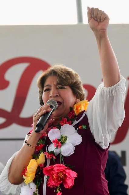 Maestra Delfina Gómez, candidata a gobernadora del Estado de México por MORENA, PT y PVEM.