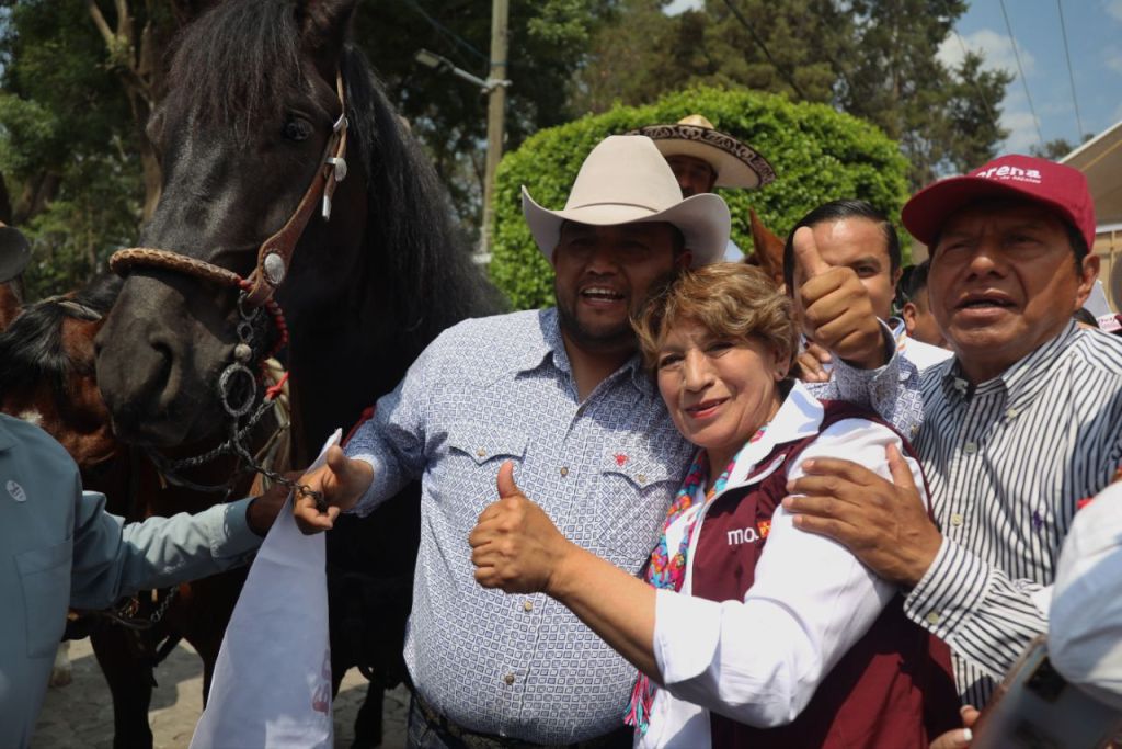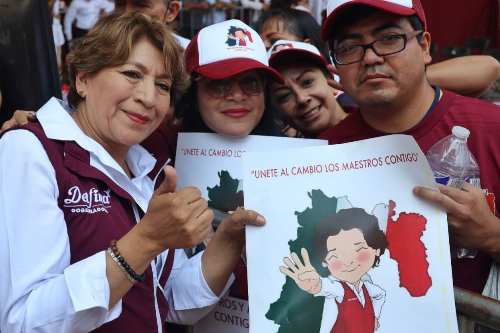También, la maestra Delfina Gómez estuvo acompañada por Mario Delgado, presidente del Comité Ejecutivo Nacional de MORENA; por Óscar González Yáñez, dirigente del PT en el Estado de México; por José Couttolenc, dirigente del PVEM en el Estado de México, y por César Agustín Hernández, diputado federal de MORENA.