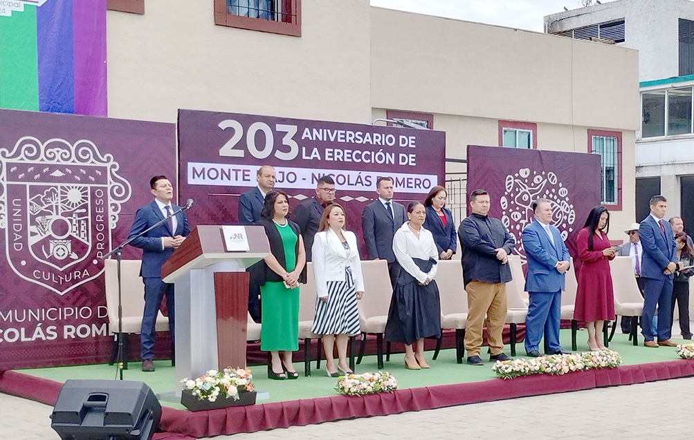 Nicolás Romero, Méx.- A 203 años de su fundación, este municipio se ha consolidado como una ciudad de derechos y libertades para todos sus habitantes, ya que desde sus orígenes esta tierra es de grandeza; “y por lo tanto nuestro destino como nicolasromerenses es de grandeza”. Afirmo el Presidente Municipal Constitucional de Nicolás Romero, Armando Navarrete López, al encabezar la ceremonia conmemorativa de la erección de Monte Bajo, como cuna de esta municipalidad.