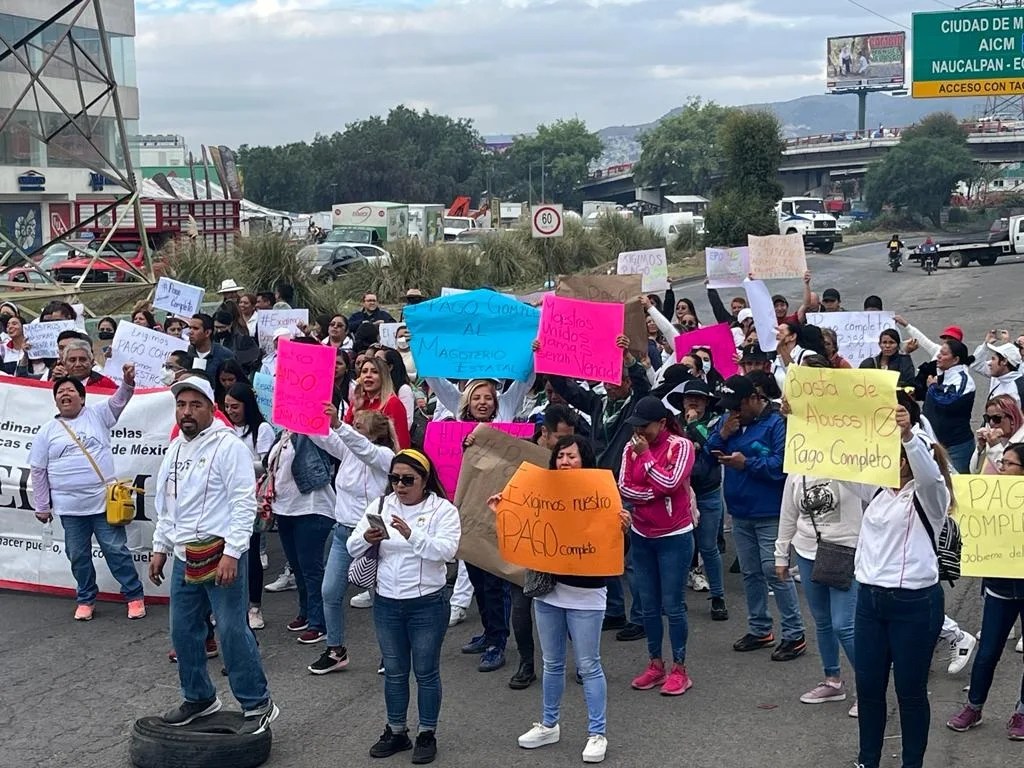 Esta mañana los docentes mexiquenses, cerraron vialidades como Mario Colín a la altura del Suburbano en Tlalnepantla; el Periférico Norte en dirección a la Cdmx, a la altura del palacio municipal de Naucalpan; la México-Querétaro con dirección a Querétaro a la altura de la caseta de Tepoztlán; la Texcoco- Lechería a la altura de la Central de Abastos Ecatepec; México- Texcoco a la altura de los bancos en Los Reyes; la avenida López Portillo, a la altura de Tultepec; la México- Puebla, a la altura de Chalco, dirección Cdmx; la caseta el Dorado, Toluca Ixtlahuaca.