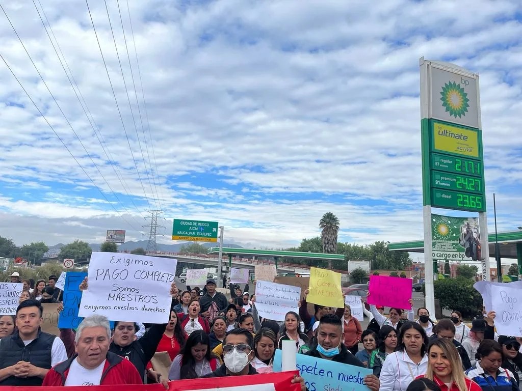 A partir de las 8 de la mañana de hoy, profesores se movilizaron en al menos 10 puntos del Estado de México, así tomaron la caseta 71 de la autopista México-Puebla, a la altura de Chalco; la carretera México-Texcoco, a la altura de los bancos, en Los Reyes la Paz; la carretera Texcoco-Lechería, a la altura de la Central de Abasto en Ecatepec; la Avenida Central, frente al Metro Río de los Remedios y la Autopista México-Querétaro a la altura de la caseta de cobro de Tepotzotlán; además de la calle Lerdo frente al Palacio de Gobierno en la ciudad de Toluca, entre otros puntos de la entidad, por el incumplimiento de la prestación colateral del Convenio de Sueldo y Prestaciones 2022.