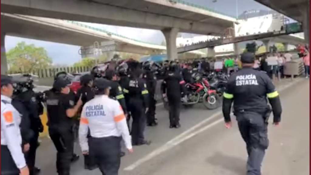De acuerdo a imágenes en redes sociales, los policías estatales llegaron a replegar a los maestros que cerraron el Periférico norte para exigir su pago de prestaciones, quienes los recibieron con el grito de “somos docentes, no delincuentes”.