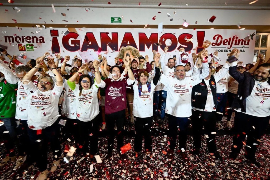 TOLUCA, Méx.- “¡Ganamos! Esta es la victoria del pueblo mexiquense, vamos a trabajar y gobernar por el bienestar de todas y todos”, aseguró la próxima gobernadora del Estado de México, Delfina Gómez, al celebrar su triunfo en la contienda electoral.