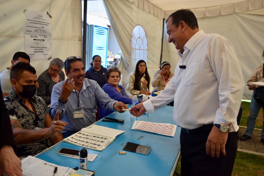 Alrededor de las 10 de la mañana, condujo hasta la casilla 2530 ubicada en el Barrio de Santa Cruz, el también exalcalde de esta demarcación instó a los ciudadanos de la entidad mexiquense a aprovechar el clima para ir a votar, “es algo muy rápido y no hay pronóstico de lluvia, es muy fácil votar hoy porque es sólo una boleta ojalá todos tengan la oportunidad de hacerlo.”, agregó.