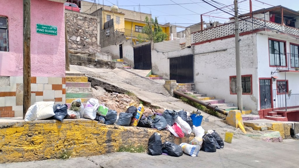 Tony Rodríguez, habitantes de la colonia Ex Ejidos de San Lucas Patoni, de las calles Pino Suárez, Esq. Emiliano Zapata, amenazan con llevar la basura a tus oficinas de Palacio en Tlalnepantla, tras la nula recolección de basura.