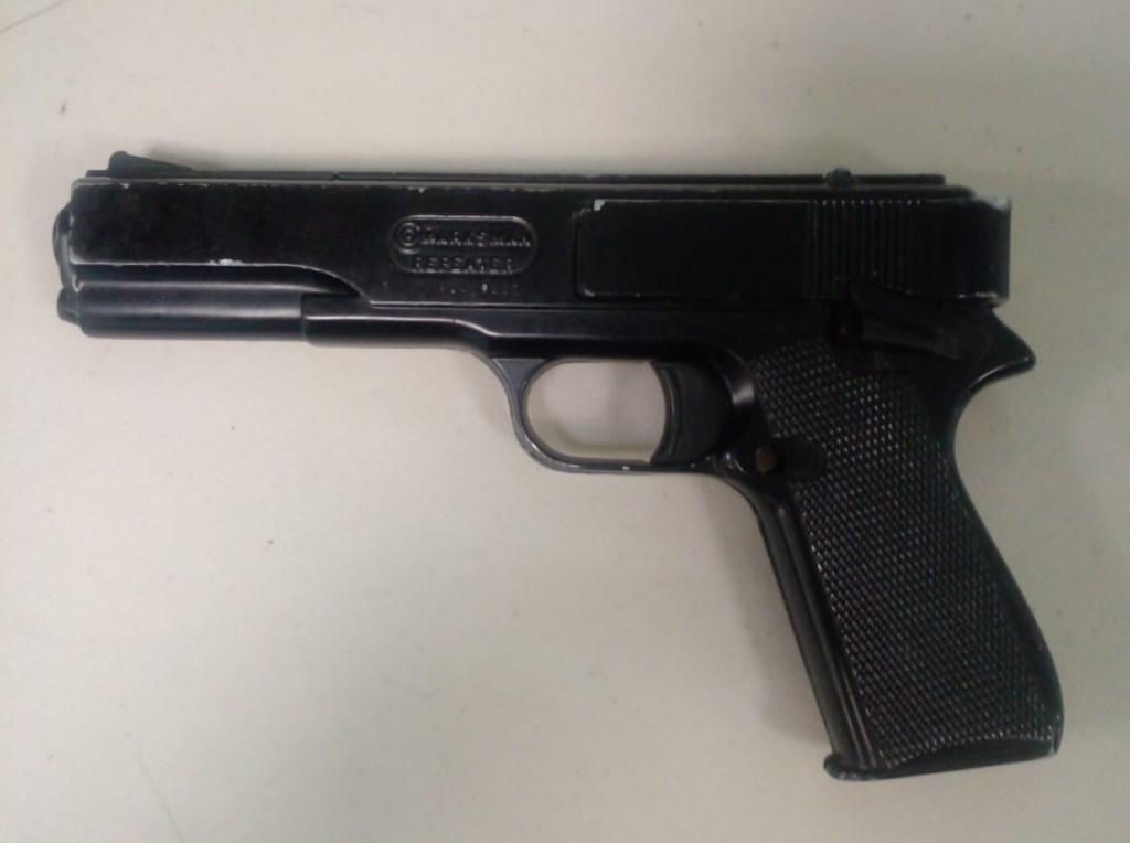 Al realizarles una inspección a los malhechores se les encontró un arma de replica tipo escuadra color negra y un arma blanca respectivamente, así como teléfonos celulares y unos audífonos de diadema.