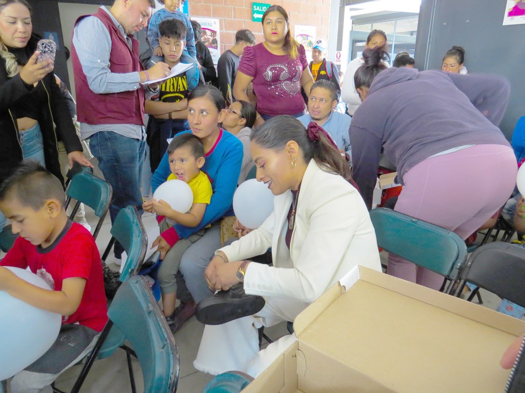 Al concluir el evento, el alcalde junto con la presidenta del DIF y servidores públicos locales, hicieron entrega de calzado en beneficio de niñas y niños de nivel preescolar, en apoyo a la economía de los padres de familia, para el regreso a clases.