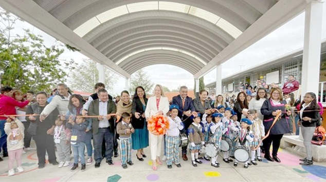 Acompañada de maestros y alumnos, la alcaldesa Ma. De Los Ángeles Zuppa, cortó el listón inaugural del nuevo arco techo.