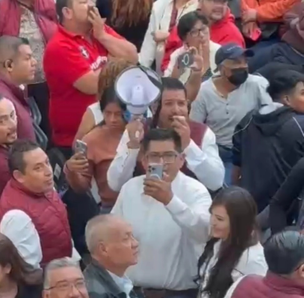 Mientras que el primo del alcalde, Carlos Contreras, con megáfono en mano seguía las porras a favor del edil y promovía abucheos contra la presidenta de la Mesa Directiva, Azucena Cisneros, quien había sido excluida del presidium, y fue subida al templete por indicaciones de la Gobernadora cuando ya había iniciado el evento.