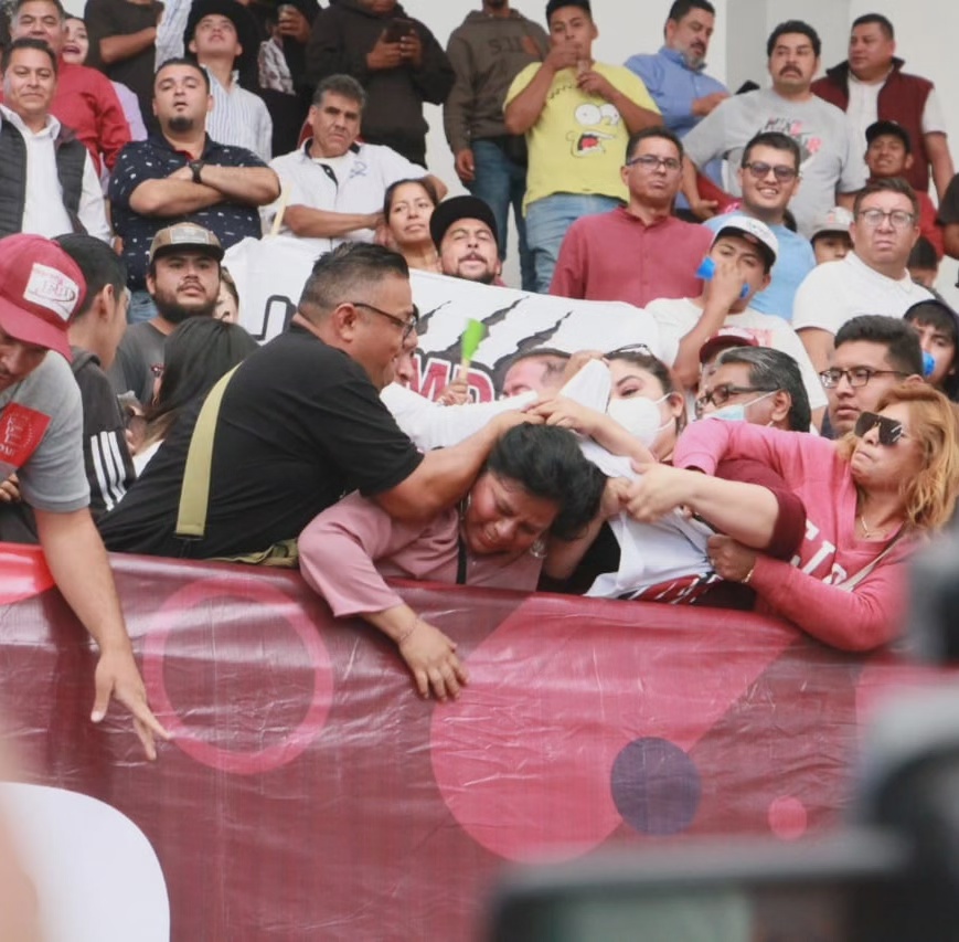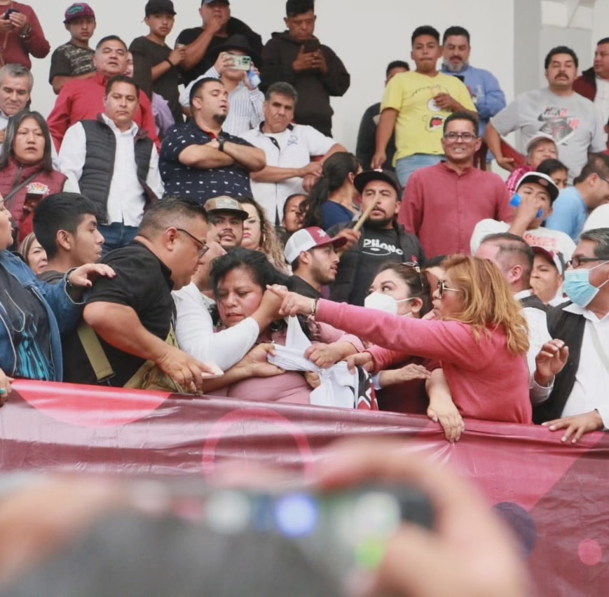 Al final del evento, cuando acababa de salir la Gobernadora, en la zona de gradas se desató un enfrentamiento provocado por grupos de choques de Vilchis, con vecinos que respaldan al uno de los líderes de izquierda Octavio Martínez.