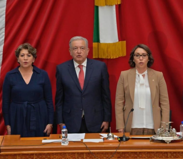 No más negocios desde las oficinas de gobierno. Suspenderá servicios privados de salud y bajará sueldos a salarios de primer nivel. Programas universales para adultos mayores y discapacitados. Toluca, Méx.- En un hecho histórico en el Estado de México, la Presidenta de la Mesa Directiva de la Legislatura local, Azucena Cisneros tomó protesta a la primera gobernadora de la entidad, Delfina Gómez Álvarez, para el periodo 2023-2029, ante la presencia del Presidente de la República, Andrés Manuel López Obrador, en el inicio de lo que será una gestión estatal transparente, inclusiva que busca el desarrollo de todas y todos los sectores, y sin privilegios a servidores públicos. En sesión solemne en el recinto legislativo, junto al gobernador Alfredo del Mazo, y el presidente del Poder Judicial, Ricardo Sodi; la presidenta de la Legislatura y diputada de Ecatepec, subrayó que el evento es uno de los actos más trascendentes para la vida política y democrática de las y los mexiquenses. En su intervención, la Gobernadora electa, señaló que es un orgullo que por primera vez dos mujeres encabecen el acto solemne, con la diputada Azucena Cisneros como presidenta del Poder Legislativo, a quien deseó éxito en su gestión “porque es tiempo de mujeres y lo vamos a hacer muy bien”. Reiteró que ser Gobernadora fue gracias a la voluntad popular, que busca un cambio profundo, humanitario y democrático, que pone fin a un gobierno de unos cuentos y a favor del pueblo, y que su gabinete mostrará que se pueden hacer las cosas bien, con transparencia y amor el pueblo. “Soy la primera Gobernadora de este gran estado, no les voy a fallar, sé que esta brecha que se está abriendo para las futuras generaciones, tenemos que sumar esfuerzos para demostrar que las mujeres sí podemos, que somos capaces y llevar la responsabilidad de llevar a buen puerto el estado”. Agradeció el gran respaldo del Presidente de la República, Andrés Manuel López Obrador, con quien hizo el compromiso de trabajar de la mano con el gobierno federal, coadyuvar en la construcción del Proyecto de Nación y avanzar en la solución de los desafíos de seguridad, agua, movilidad y crecimiento económico con empleos dignos. También puntualizó que su gobierno será fortalecido en los pilares de la transparencia y la lucha contra la corrupción, porque un gobierno más transparente reduce las posibilidades de que ocurran hechos de corrupción, evitarán intermediarios en los trámites administrativos, y advirtió que aquél servidor público que no cumpla con rectitud e integridad su encomienda será castigado con todo el proceso de la ley, “ya basta, se acabaron los negocios desde las oficinas del gobierno y las riquezas”. Delfina Gómez reiteró que su gobierno será incluyente y cercano a la gente, de territorio y no de escritorio, que atienda a quienes han sido excluidos históricamente, que garantice servicios a todas las familias, educación de calidad, mejores condiciones laborales y buenos salarios, posibilidad de crecer a los jóvenes, y anunció que mantendrá audiencias ciudadanas con su gabinete, y la primera será el 11 de octubre en Palacio de Gobierno. Y para el desarrollo de la entidad buscará trabajo conjunto con las cámaras empresariales, colegios de profesionistas, sindicatos, organizaciones no gubernamentales, sindicatos, medios de comunicación y ciudadanos interesados en construir un mejor Edomex. Subrayó que el Poder Legislativo será de gran apoyo para las reformas al sistema judicial con modificaciones a los códigos Civil y Penal, para el castigo severo a quien ejerza cualquier tipo de violencia contra mujeres, sanciones rigurosas a quienes ejerzan violencia a animales de compañía y a la biodiversidad. Al brindar un mensaje desde el recinto legislativo, el Presidente de México, Andrés Manuel López Obrador, hizo un reconocimiento a las y los 75 diputados, ya que autorizaron recursos para impulsar las obras de infraestructura que el gobierno federal realiza en el Estado de México; precisó que en las próximas horas pondrá en marcha la primera etapa del tren interurbano que brindará servicio en el valle de Toluca, y para marzo de 2024 inaugurará la segunda etapa del proyecto para conectar hasta la Ciudad de México. También precisó que en esa misma fecha se estará habilitando el trolebús de Chalco a Santa Martha, obra de agilizará la movilidad de los mexiquenses que viven en la zona oriente de la entidad; obra impulsada por el gobierno federal en el territorio estatal que estará en el primer trimestre es el tren que comunicará a la zona de Buenavista con el Aeropuerto Felipe Ángeles, medio de comunicación terrestre que permitirá un tiempo de traslado de 45 minutos. En materia política López Obrador reconoció la colaboración de Alfredo Del Mazo Maza, ya que a diferencia de otros gobernadores él mostró una colaboración y participación con los proyectos de infraestructura, pero sobre actúo como un demócrata ya que no se metió en la elección y respeto la voluntad de los mexiquenses.