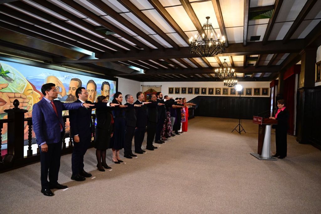 Delfina Gómez Álvarez se convierte en la primera Gobernadora Constitucional del Estado de México; en su primer acto, toma protesta a su Gabinete Legal. TOLUCA, Méx.- El primer minuto de este 16 de septiembre, la maestra Delfina Gómez Álvarez hizo historia al convertirse en la primera mujer gobernadora del Estado de México. Su primer acto tomó protesta a 14 de 18 integrantes de su Gabinete Legal, quienes la acompañarán en su periodo de Gobierno 2023-2029. Así, en el Salón del Pueblo, en el Palacio de Gobierno de Toluca, rindieron protesta e hicieron la promesa de gobernar con honestidad, lealtad y compromiso para los mexiquenses: Horacio Duarte Olivares, Secretario General de Gobierno; Macarena Montoya Olvera, Secretaria de Salud; Norberto Morales Poblete, Secretario de Trabajo; Miguel Ángel Hernández Espejel, Secretario de Educación, Ciencia, Tecnología e Innovación; Juan Carlos González Romero, Secretario de Bienestar; María Eugenia Rojano Valdés, Secretaria del Campo; Laura González Hernández, Secretaria de Desarrollo Económico; Nelly Minerva Carrasco Godínez, Secretaria de Cultura y Turismo; Hilda Salazar Gil, Secretaria de Contraloría; Alhely Rubio Arronis, Secretaria del Medio Ambiente; Pedro Moctezuma Barragán, Secretario del Agua; Mónica Chávez Durán, Secretaria de Mujeres; Daniel Andrés Sibaja González, Secretario de Movilidad, y Jesús George Zamora, Consejero Jurídico. Minutos después en el Salón Guadalupe Victoria, la Gobernadora oficializó la instalación del Gabinete, y concluyó el programa en el Despacho de Gobierno. Un nuevo comienzo se escribe en el Estado de México con la llegada de la Gobernadora Constitucional Delfina Gómez, quien el jueves pasado anunció que gobernará para todas y para todos los mexiquenses, para todos los sectores, pero en especial, siguiendo los principios de la Cuarta Transformación, por el bien de todos primero por los pobres. Asimismo, la Gobernadora hizo énfasis en que este nuevo Gobierno se caracterizará por el lema “El Poder de Servir”, resaltando que en esta administración los servidores públicos ocuparán un cargo para servir, no para servirse.