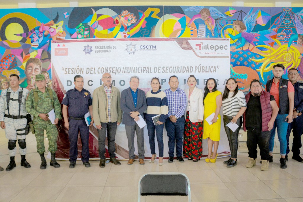 Teniendo como escenario el edificio “Bicentenario” (anexo a la Alcaldía de Tultepec), Sergio Luna Cortes encabezó la undécima sesión del Consejo Municipal de Seguridad Pública, comentando “Seguiremos trabajando en favor de la ciudadanía, garantizando la seguridad en nuestro municipio, haciendo un llamado a los elementos policiacos de índole castrense, marina, federal, estatal y municipal, a no bajar la guardia y seguir comprometidos con la seguridad de las y los mexiquenses.