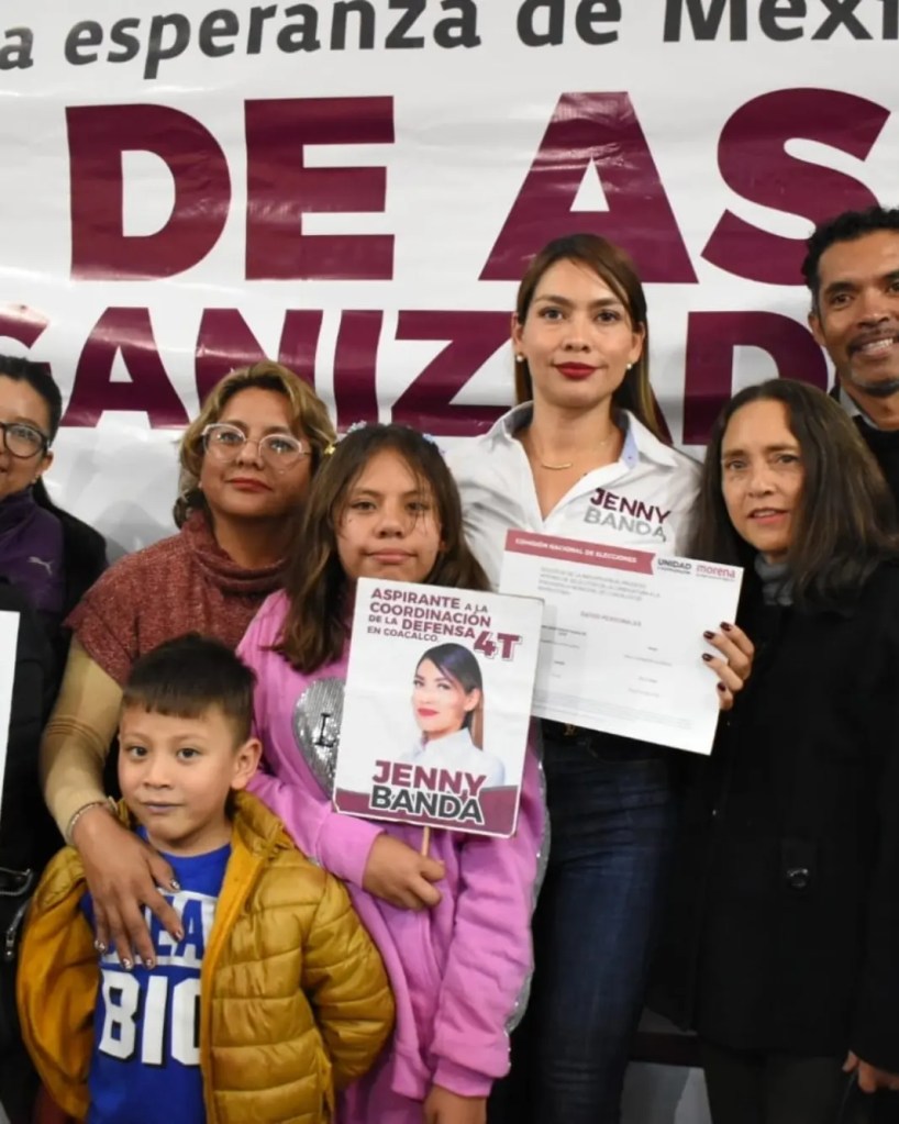 Coacalco, Méx.- Arropada por sus simpatizantes y seguidores, la Consejera Nacional de Morena, Jenny Banda, mostró su registro al proceso interno de selección de la candidatura a la presidencia municipal de Coacalco de Berriozábal y refrendó que continuará con sus recorridos por todo el municipio, los cuales la colocan como líder en diferentes encuestas.
