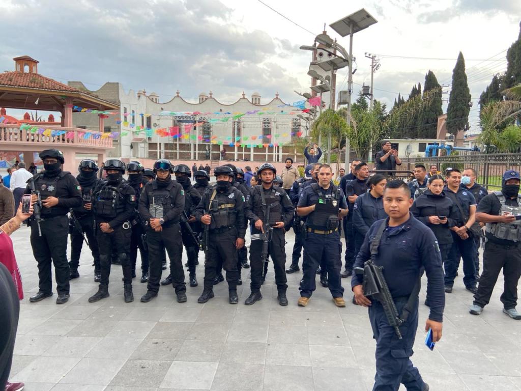 El grupo de choque, llegó respaldado por unos 50 policías municipales y del grupo táctico para intimidar a la población, sin embargo los vecinos no permitieron que ingresaran a las oficinas propiedad del pueblo, y los policías se vieron obligados a replegarse.