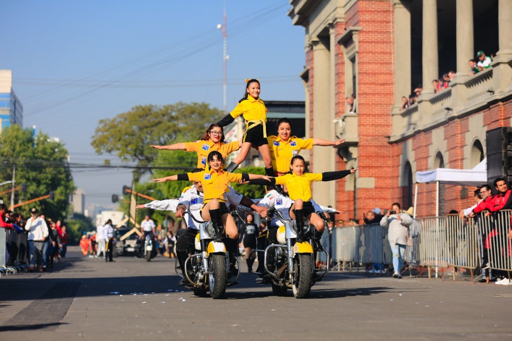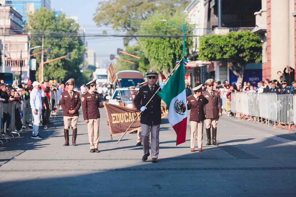 Tras el paso de cada uno de los contingentes que recorrieron y llenaron de color la avenida Sor Juana Inés de la Cruz, Fernando Platas deportista mexicano y campeón olímpico fue el encargado de rendir el parte de novedades en el que se reportó saldo blanco.