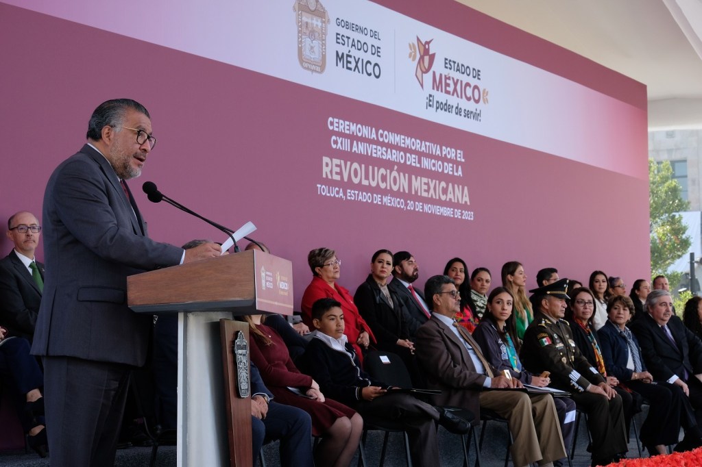 En la ceremonia oficial que se llevó a cabo en la Plaza de los Mártires en Toluca, Horacio Duarte manifestó que el gobierno de la Maestra Delfina Gómez representa los valores de sencillez y cercanía con el pueblo que inspiraron a los héroes revolucionarios hace 113 años.