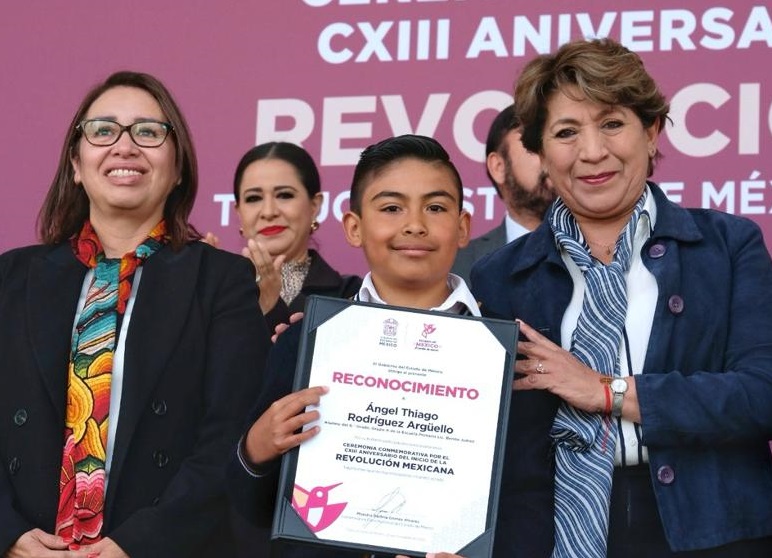 El alumno de primaria Ángel Tiago Rodríguez Arguello aseguró que la niñez y la juventud mexiquense confía en la Gobernadora Delfina Gómez.