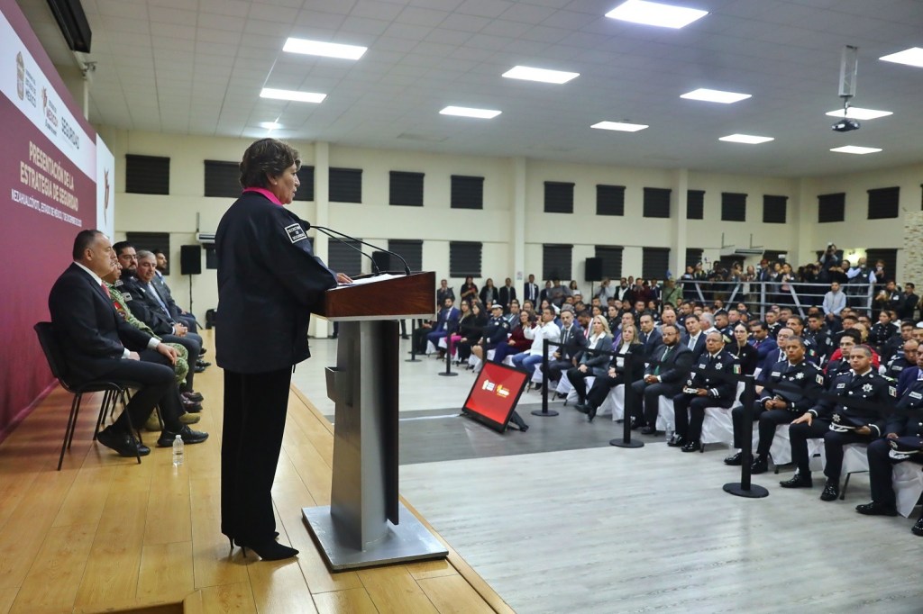 NEZAHUALCÓYOTL, Estado de Méx.- La Estrategia “Construcción de la Paz con Seguridad e inteligencia” busca hacer frente a la raíz del problema través de los principios de la Cuarta Transformación y El Poder de Servir; está alineada a la Agenda 2030 de la ONU y a la Estrategia Nacional de Paz y Seguridad; además recoge las principales demandas manifestadas por la ciudadanía, afirmó la Gobernadora Delfina Gómez Álvarez durante la presentación del nuevo esquema.