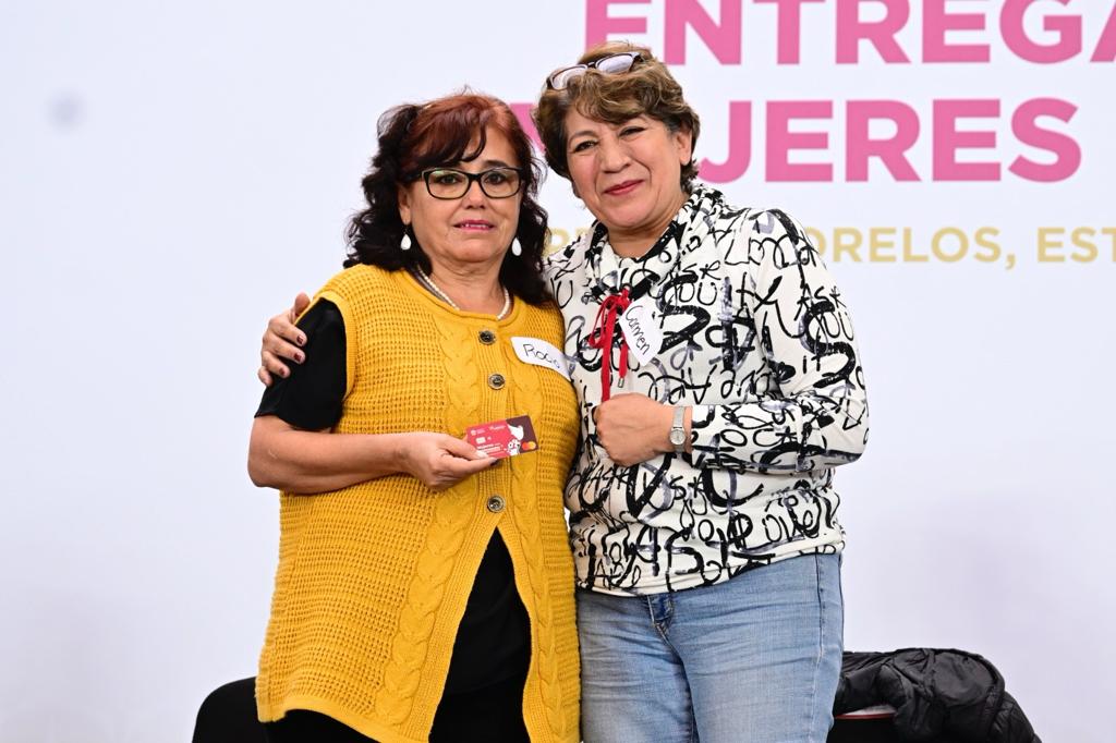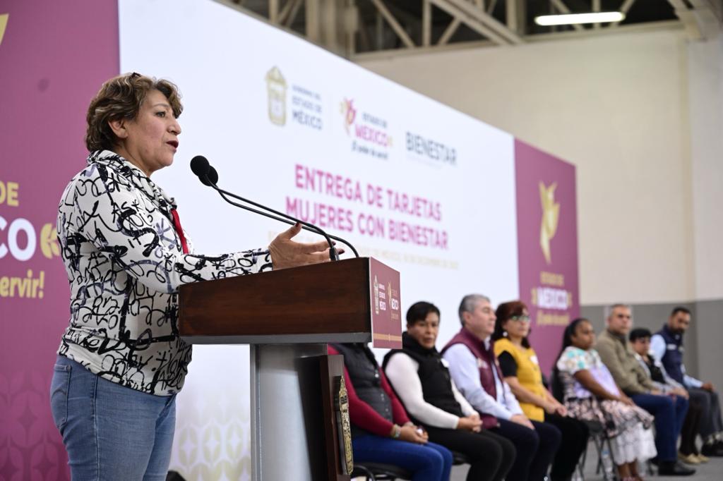 Ecatepec, Méx.- La Maestra Delfina Gómez Álvarez, Gobernadora del Estado de México entregó las primeras 6 mil tarjetas del programa Mujeres con Bienestar en Ecatepec, que busca atender a las mexiquenses que más lo necesitan; este apoyo se dará a 400 mil mujeres en toda la entidad a través de una estrategia integral que considera la dispersión de 2 mil 500 pesos bimestrales, así como acceso a diversos servicios gratuitos, directos y sin intermediarios, a partir del 21 de diciembre próximo.