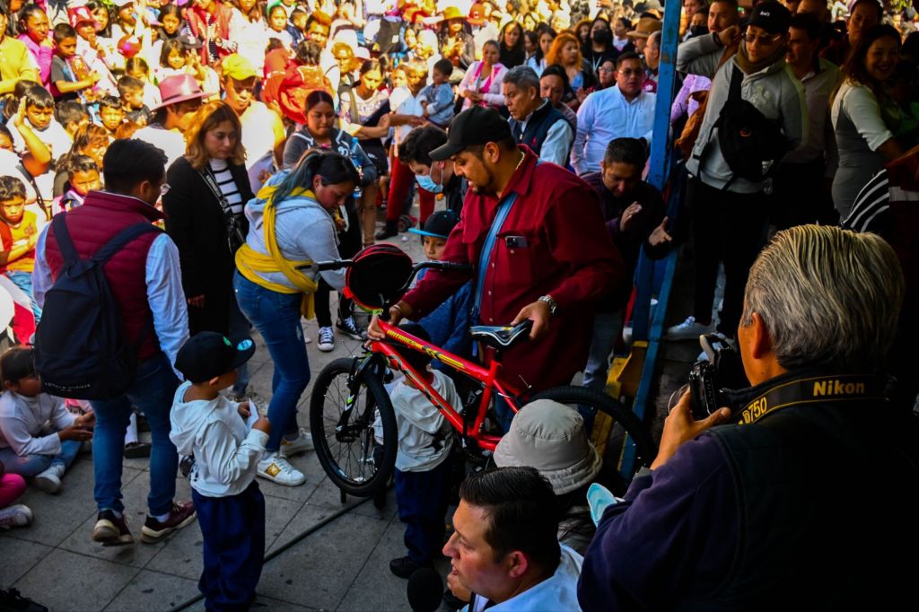En un ambiente emotivo y de convivencia familiar, las niñas y niños recibieron juguetes y bicicletas de manos de Navarrete López, quien acompañado por la presidenta honoraria del DIF local, Anel Roa Vargas, la síndica municipal, Yoselin Mendoza Ramírez y funcionarios de la actual administración, deseó a todos los habitantes de Nicolás Romero, que 2024 sea un excelente año. Tras reconocer el esfuerzo de los servidores públicos de la demarcación que respaldaron la realización del festival, el edil agradeció a la ciudadanía por su asistencia a dicho festejo y dejó en claro que “nos fascina que este espacio público sea de sus legítimos dueños que son ustedes y que vengan al corazón de nuestro querido municipio, para que compartamos la vida”.