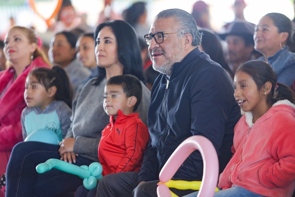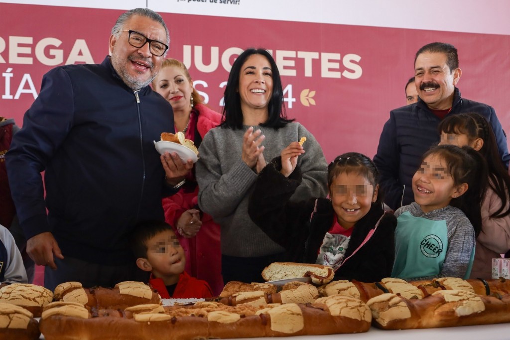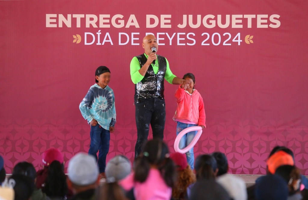 TEXCALTITLÁN, Méx.- En el marco de la celebración por el Día de Reyes, decenas de niñas y niños de Texcaltitlán a nombre de la Maestra Delfina Gómez Álvarez, Gobernadora del Estado de México recibieron juguetes, partieron la tradicional rosca y disfrutaron de un espectáculo de payasos y juegos mecánicos.