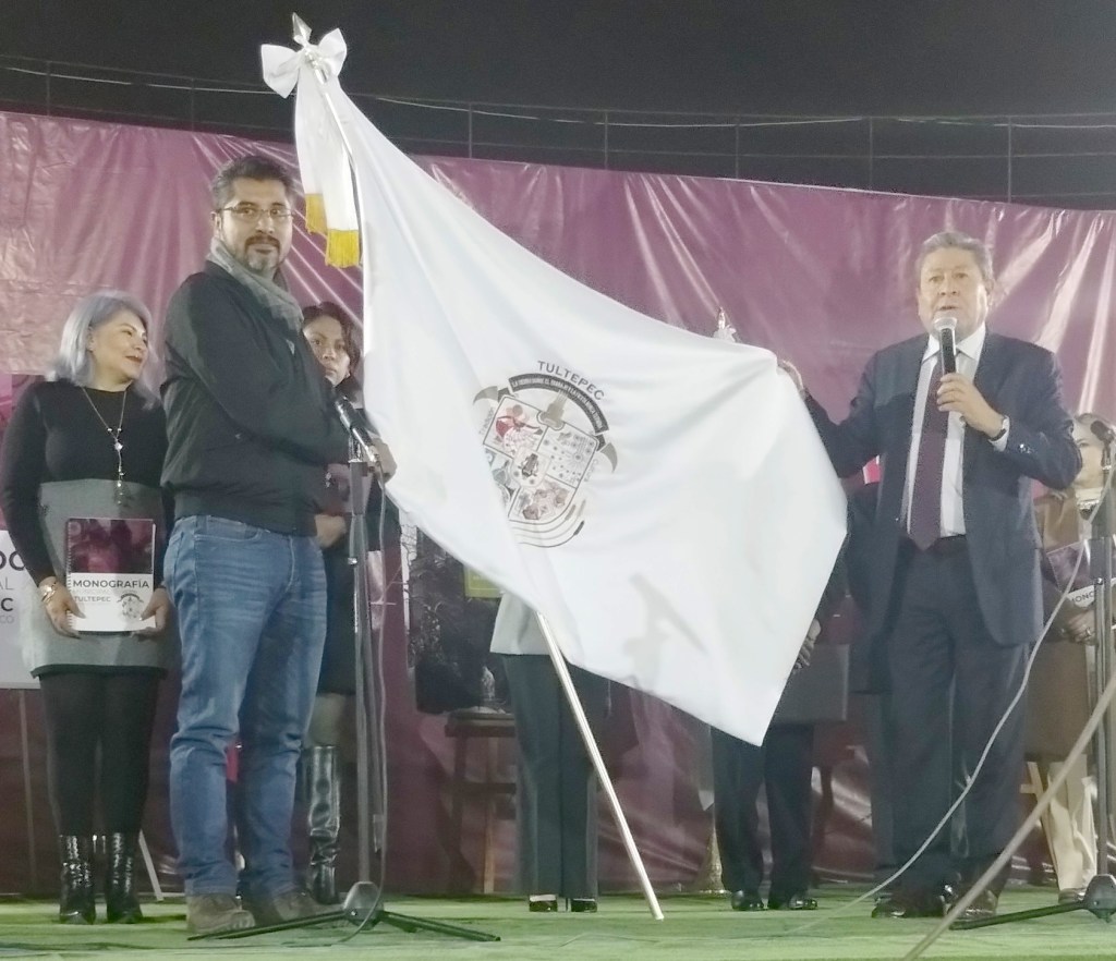 Agradeció la colaboración de los alumnos del CECyTEM plantel CTM, quienes son los creadores del escudo que presentará la Bandera de Tultepec. Luna Cortes comentó que Tultepec celebraba su cumpleaños el día 3 de mayo equivocadamente, por muchos años el reconocimiento jurídico de Tultepec lo hicimos cada 3 de mayo, pero de acuerdo a la investigación que realizamos, se determinó que el 13 de enero es el reconocimiento legal del municipio de Tultepec.