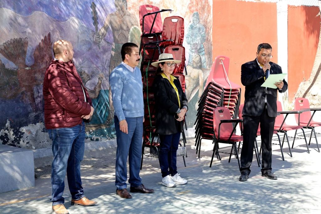 El Secretario de Educación, Ciencia, Tecnología e Innovación, Miguel Ángel Hernández Espejel entregó mobiliario y obras en cinco escuelas secundarias, primarias y jardines de niños en Ecatepec.