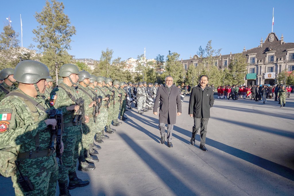 En representación de la Gobernadora Delfina Gómez Álvarez, Duarte Olivares estuvo acompañado de los integrantes del Gabinete legal y ampliado del Gobierno estatal e integrantes de la Mesa de Coordinación para la Construcción de la Paz, así como elementos de corporaciones de seguridad y castrenses, docentes, alumnas y alumnos de la Escuela Secundaria Oficial No. 4 “Dr. Jorge Jiménez Cantú”.
