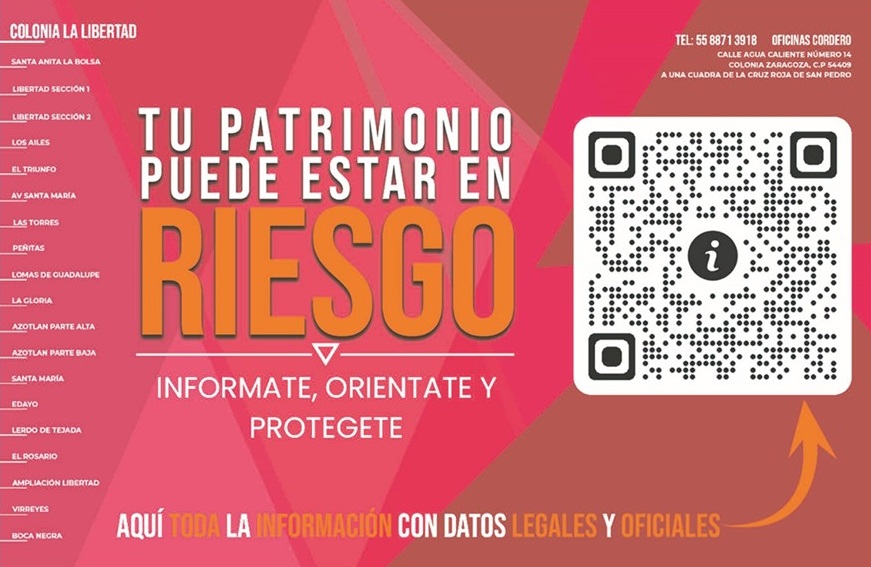 Corporativo de los Cordero dan certeza jurídica al patrimonio de miles de familias de Nicolás Romero. Se pide visitar el Código QR para mayor información.