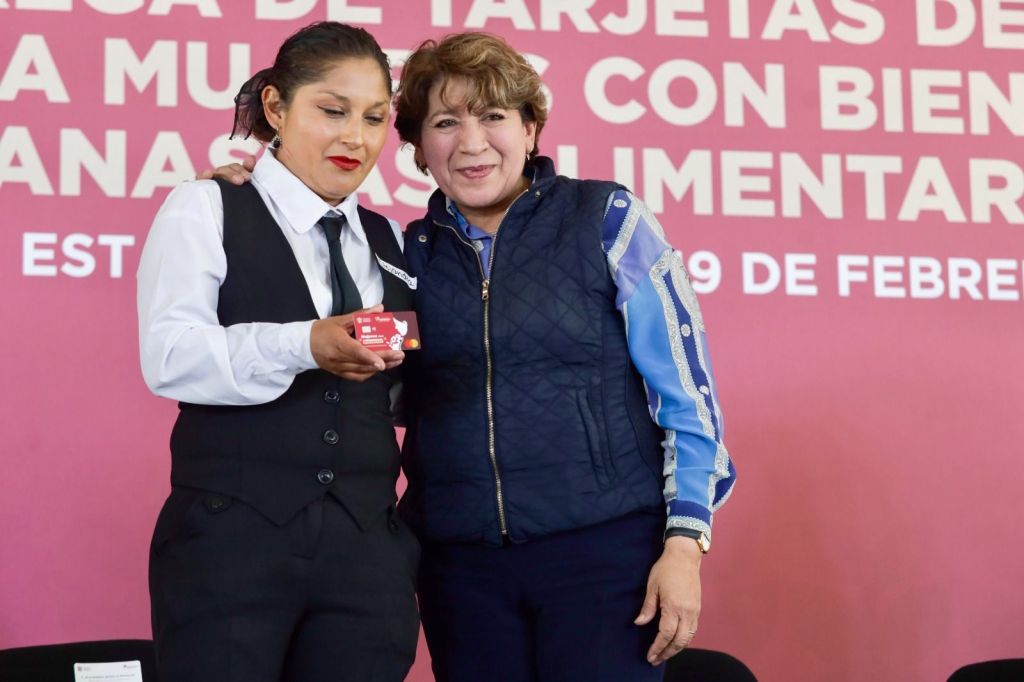 La Maestra Delfina Gómez destacó que las tarjetas de este programa tienen acceso a una red de servicios que representan un apoyo directo y transparente, sin intermediarios, acción que tiene como finalidad retribuir lo que las mujeres brindan a la sociedad, como un acto de justicia.