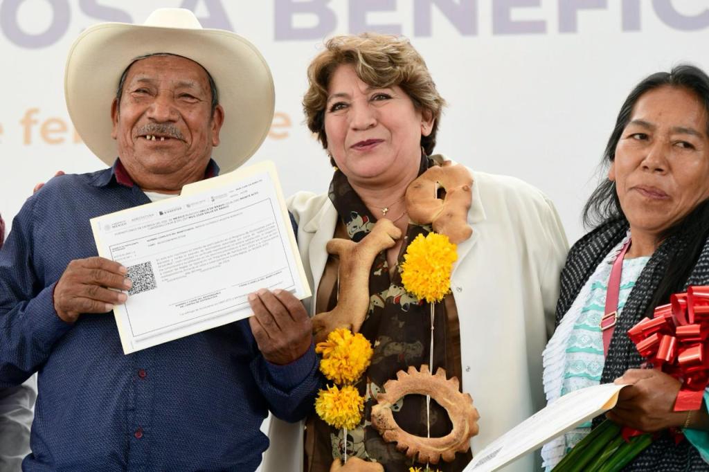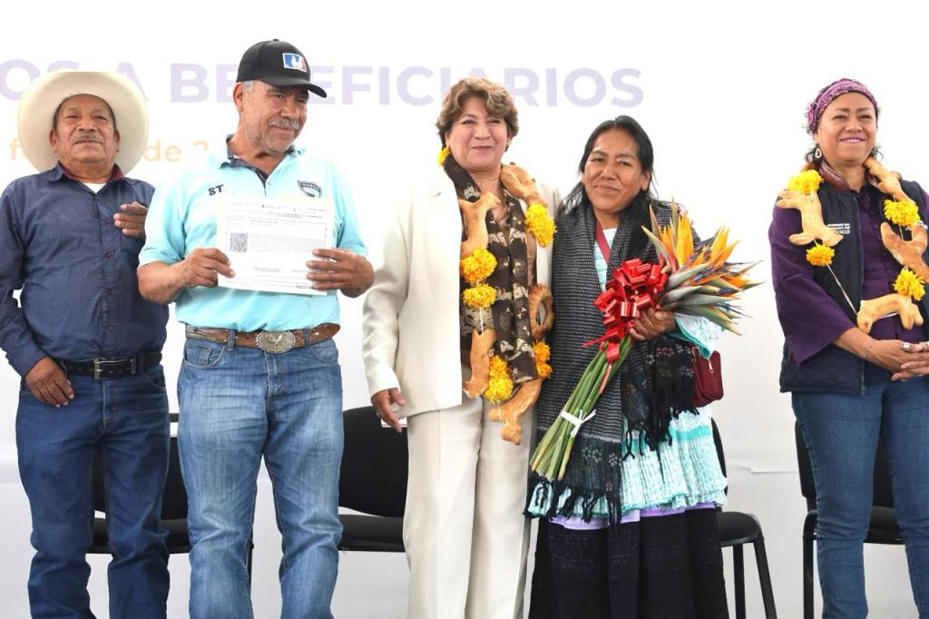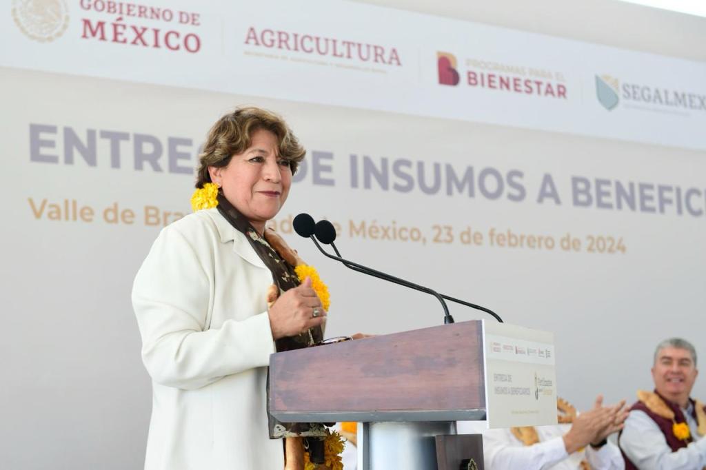 “Estos fertilizantes son una pequeña muestra de que tanto el Gobierno federal, estatal y municipal estamos empeñados en retribuir y dar justicia social a nuestros campesinos”, señaló la Maestra Delfina Gómez.