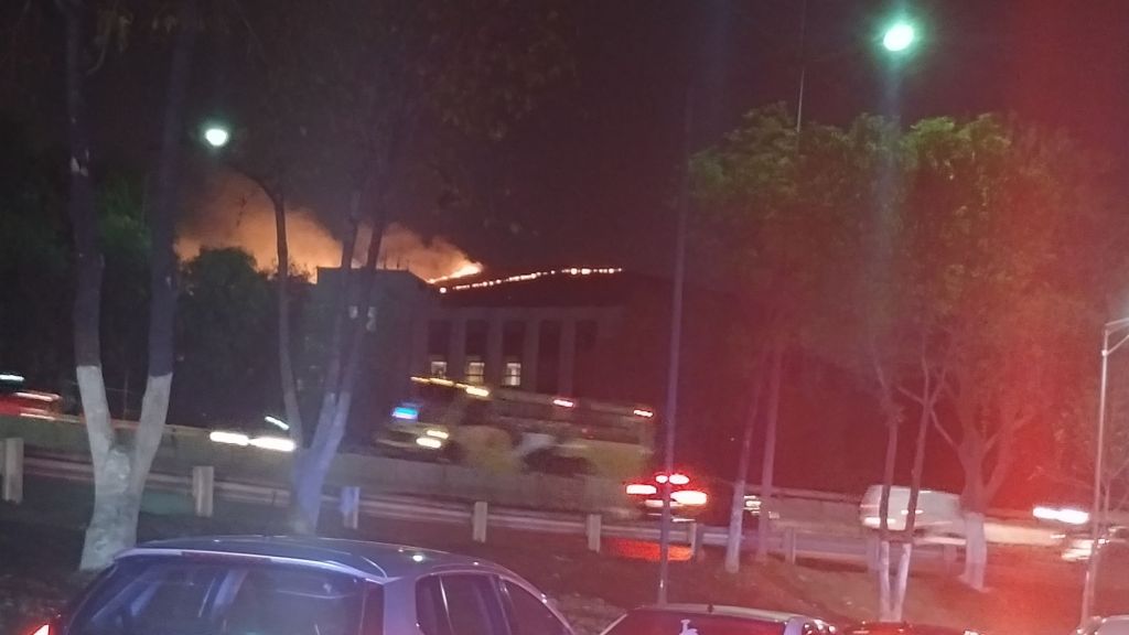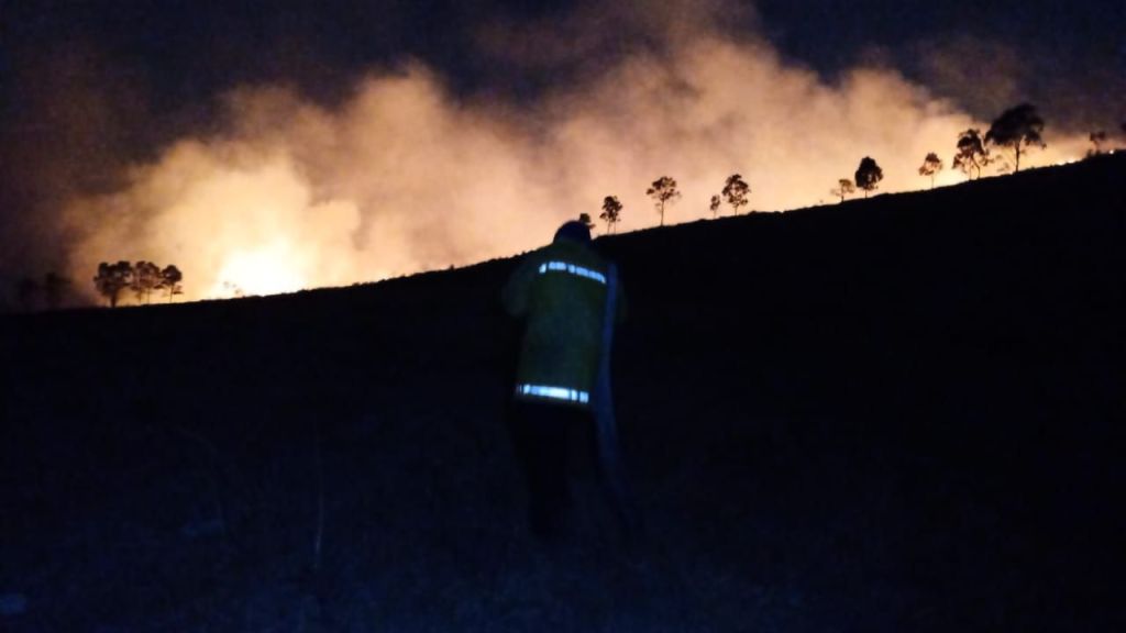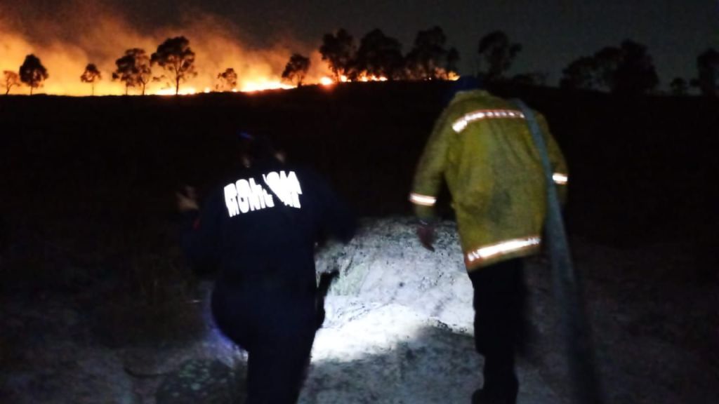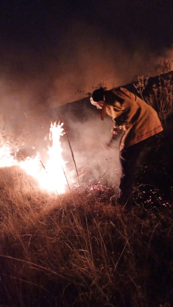 Estaciones de Chalma, Norte y Centro del H. Cuerpo de Bomberos de Tlalnepantla ataca el incendio que se registra en este momento en la parte alta de reserva ecológica de la Sierra de Guadalupe, Lugar conocido además como Cola de Caballo.