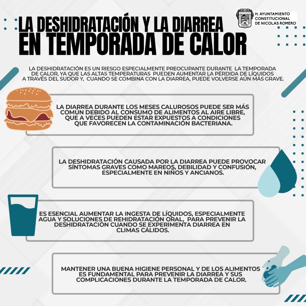 Exhorta Alcaldía de Nicolás Romero a evitar las complicaciones derivadas de diarrea por enfermedades gastrointestinales.