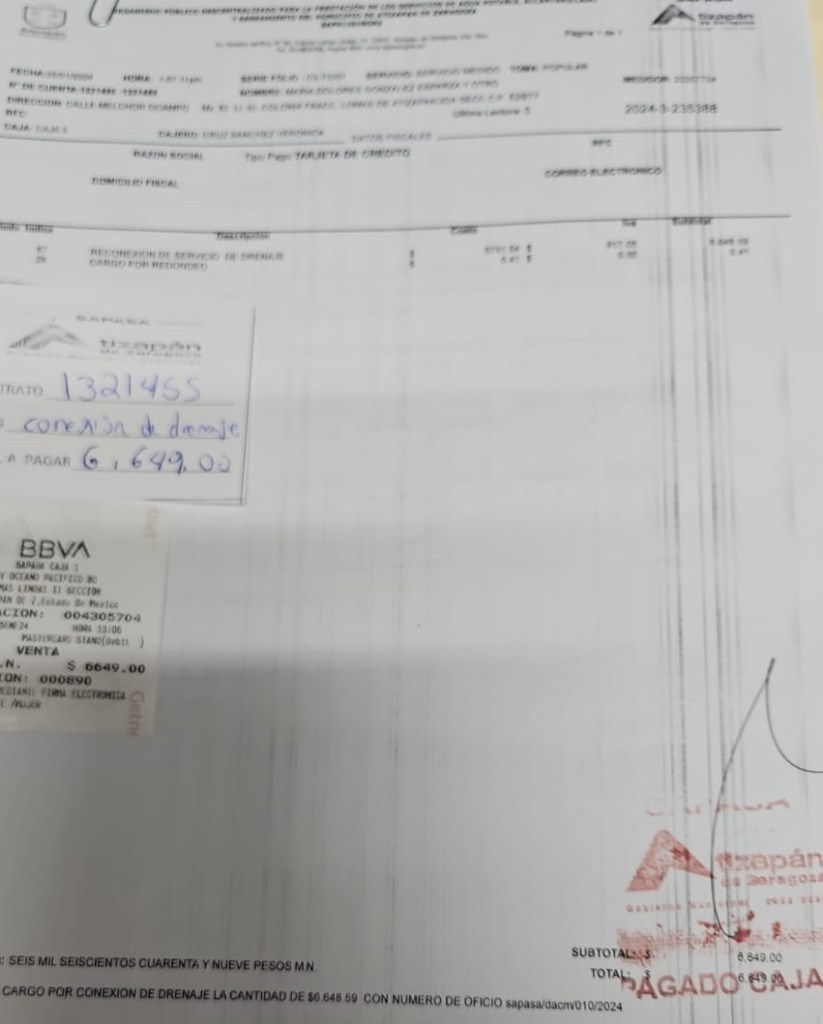 Cabe hacer mención que el cobro es por concepto de los tres metros excedentes para su conexión cantidad que le va a dar deberá pagarla en las cajas recaudadoras de este organismo para poder llevar a cabo los trabajos requeridos. “Pero grande sorpresa, ahora dicen que tengo que pagar otros 8 mil pesos y sino pago no me conectan el servicio”.