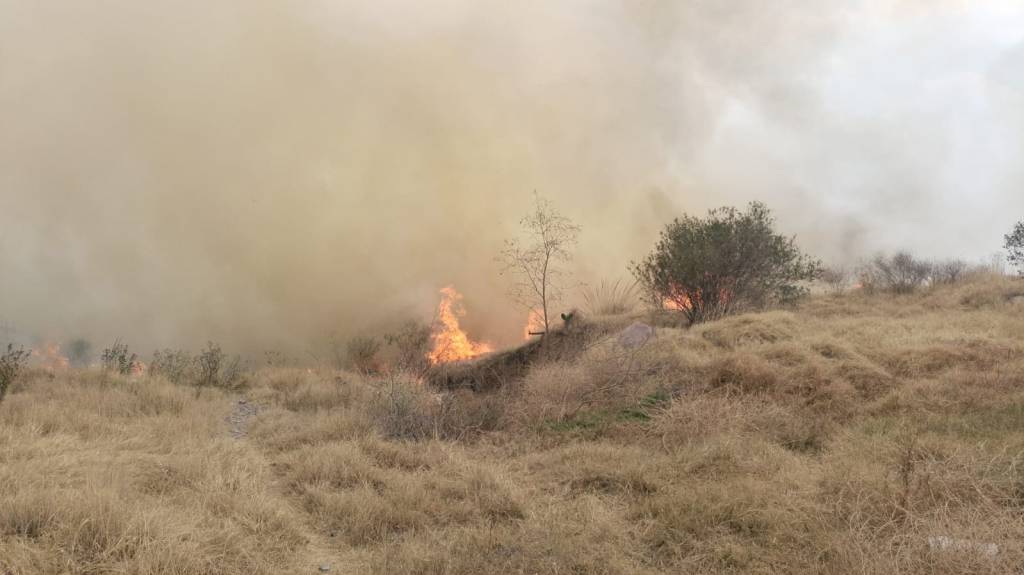 En estos momentos, personal del Cuerpo de Bomberos de Tlalnepantla, atienden y controlan 2 incendios de pastizales que se registran en: 1- Colindancia Autopista México-Querétaro dirección Norte-Sur a la altura de la gasolinera La carcacha en Barrientos.