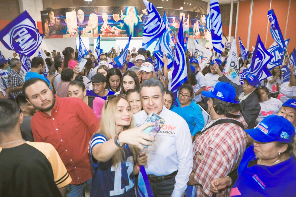 Entre porras y cánticos de cientos de panistas, Tony Rodríguez les dijo que siente emoción y energía para seguir trabajando y ganar el 2 de junio.