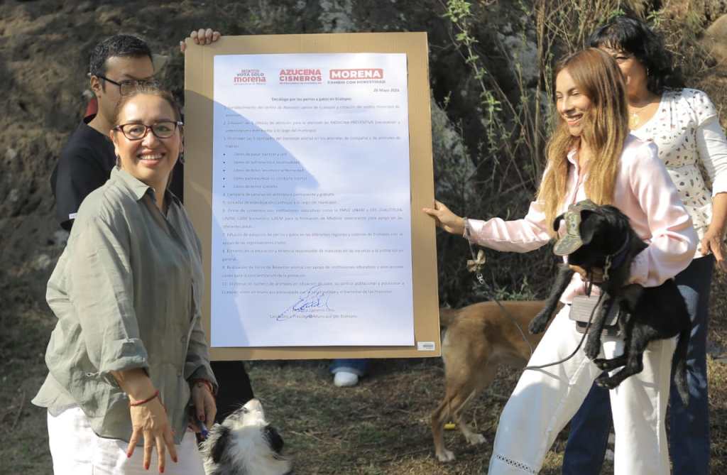 En este lugar, donde se dieron cita vecinos de la zona junto con sus canes, se firmó el “Decálogo por los perros y gatos en Ecatepec” el cual se pondrá en marcha en el nuevo gobierno, una vez que obtenga el triunfo el 2 de junio, afirmó la candidata.