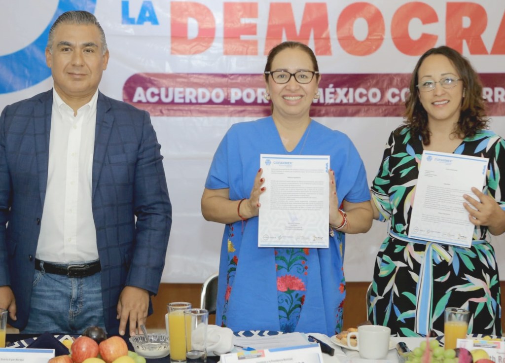 Bruno Figueroa le augura brutal derrota política a la “creída y farolera” candidata morenista Juana Carrillo, quien alardea ser protegida por el secretario general de gobierno, Horacio Duarte Olivares. En la gráfica, recibe el apoyo de sus compañeros ediles cuautitlenses.