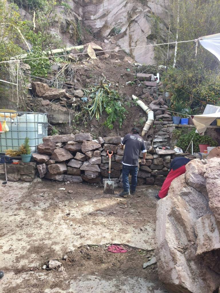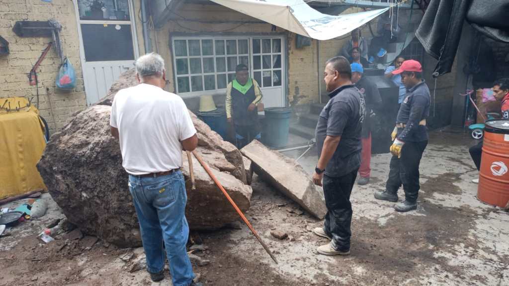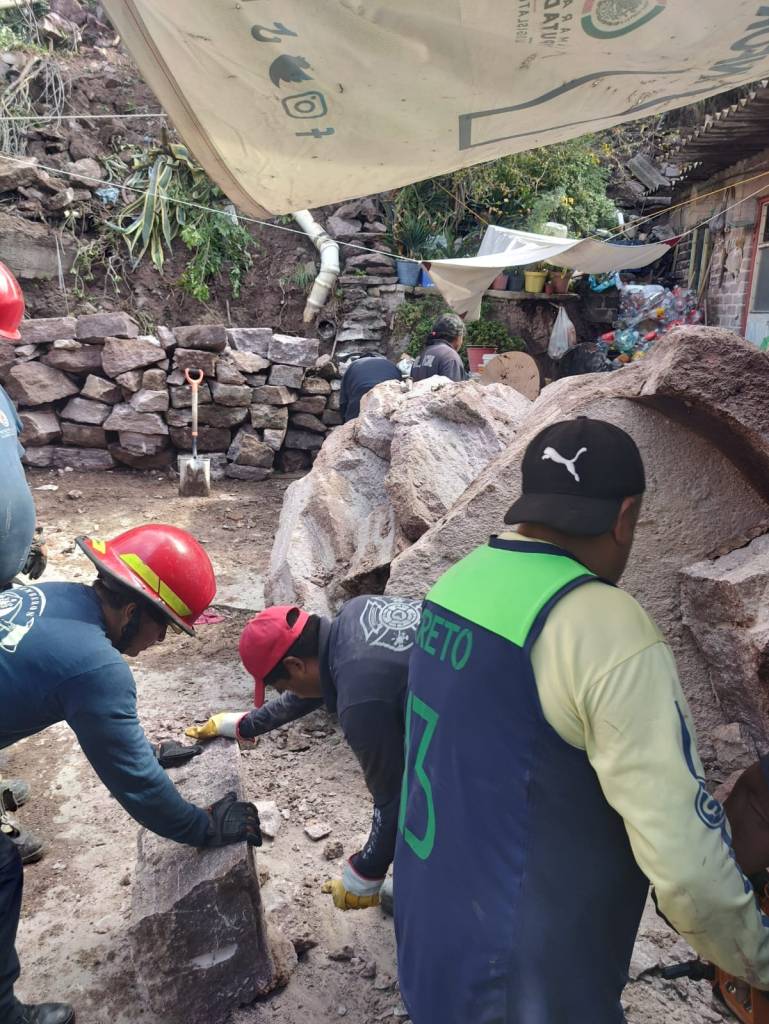 Por instrucciones del Presidente municipal Marco Antonio Rodríguez Hurtado, se le brindará todo el apoyo institucional a los moradores de la vivienda, personal de OPDM repondrá el tinaco de agua y trabajará en dos drenajes qué también fueron dañados por el deslizamiento de las piedras.