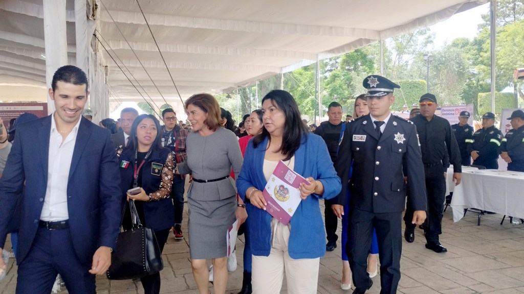 Escobar Calderón, destaco la presencia de la Presidenta Municipal, Elena García Martínez, y de la Alcaldesa electa, Ana María Castro Fernández, durante el corte inaugural del programa estatal de la “Feria de Paz y Desarme Voluntario”, que presidio la Maestra Delfina Gómez, así como los titulares de la FGJEM, de la Secretaria de Seguridad Ciudadana; de Salud, entre otros.
