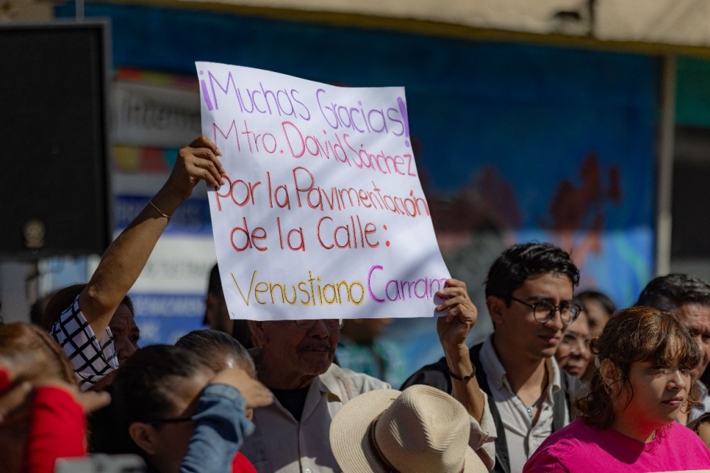 En la Calle Venustiano Carranza, David Sánchez realizó un recorrido en compañía de los vecinos del lugar, y además de beneficiar a vecinos de Villa de las Manzanas, también favorece a los habitantes de Zacuatitla: la calle fue repavimentada con concreto hidráulico y balizada en sus casi 7 mil metros cuadrados.