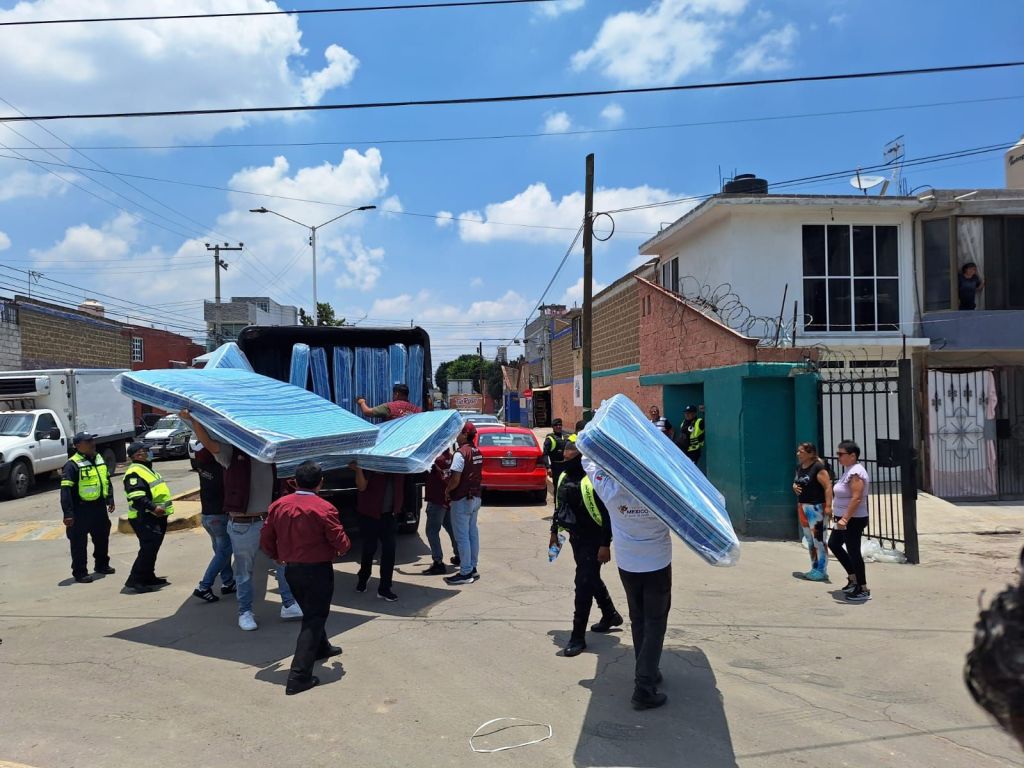 Por: González Calderoni Cuautitlán, Méx.- Después de casi 15 días de que una lluvia atípica devastará a familias del fraccionamiento Rancho San Blas, el gobierno del estado de México que encabeza la Maestra, Delfina Gómez Álvarez, se aparece entregando, colchones (viejos), cobijas y un par de zapatos de marca desconocida y de números completamente grandes. Así lo denunciaron una veintena de familias, que la entrega de cobijas, colchones y zapatos, es una falta de respeto. Mencionaron, que la inundación en su comunidad fue por culpa del estado al autorizar la edificación de bodegas, nuestro patrimonio se ve flagelado y ahora gente de la señora Delfina Gómez, se quiere “curar de salud” entregando enseres que no ocupamos. Marilu López y la señora Zeferina Arriaga, manifestaron su descontento por la perdida de todo su patrimonio y nos quieren “tapar el ojo” con unos zapatos, cobijas y colchones. Que nos digan porque quitaron el FONDEN y los recursos que antes aportaba la federación a través del estado. “Perdimos todos nuestros enseres domésticos, refrigeradores, estufas, hornos de microondas, pantallas de plasma, nuestras recamaras y ropa de nuestros hijos, todo por culpa del estado y hasta de la federación, por sus obras del tren suburbano mal planeadas.