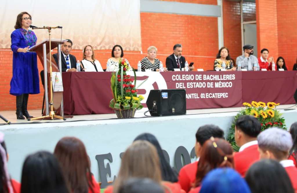 Ecatepec, Méx.- Al asistir a la Ceremonia de Graduación de alumnos Generación 2021-2024, del Colegio de Bachilleres del Estado de México (COBAEM) Plantel # 02, la presidenta municipal electa, Azucena Cisneros Coss reconoció el esfuerzo de las y los jóvenes por culminar sus estudios y anunció que su gobierno tendrá políticas de prevención de riesgos y adicciones para este sector.