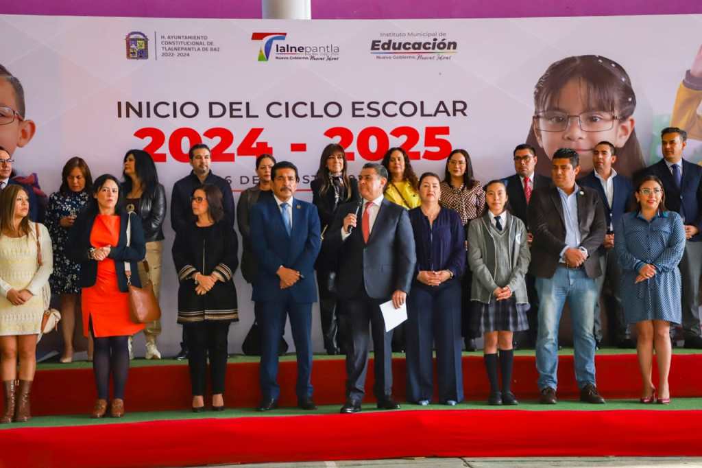 Tlalnepantla, Méx.- El Presidente Municipal, Marco Antonio Rodríguez Hurtado, inauguró el nuevo ciclo escolar 2024-2025, mediante el cual se reactivan distintas acciones educativas como clases de inglés y computación, éstas últimas en aulas recién renovadas durante la actual administración, el mantenimiento permanente a escuelas públicas, un programa integral de salud, así como la entrega de 10 mil becas, todo ello en beneficio de las y los alumnos que este lunes regresaron a las aulas.