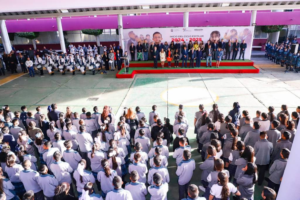 “Desde esta secundaria damos inicio en todo el municipio a este nuevo ciclo escolar, para nosotros es fundamental el hecho de estar aquí para poder compartir la emoción, el anhelo, el deseo de todas y todos los alumnos de nuestro municipio. Siempre hemos creído que es fundamental mejorar las condiciones de aprendizaje de nuestras niñas y niños para que puedan seguir adelante, con una mejor forma de vida y una mejor formación y educación”, apuntó Rodríguez Hurtado.