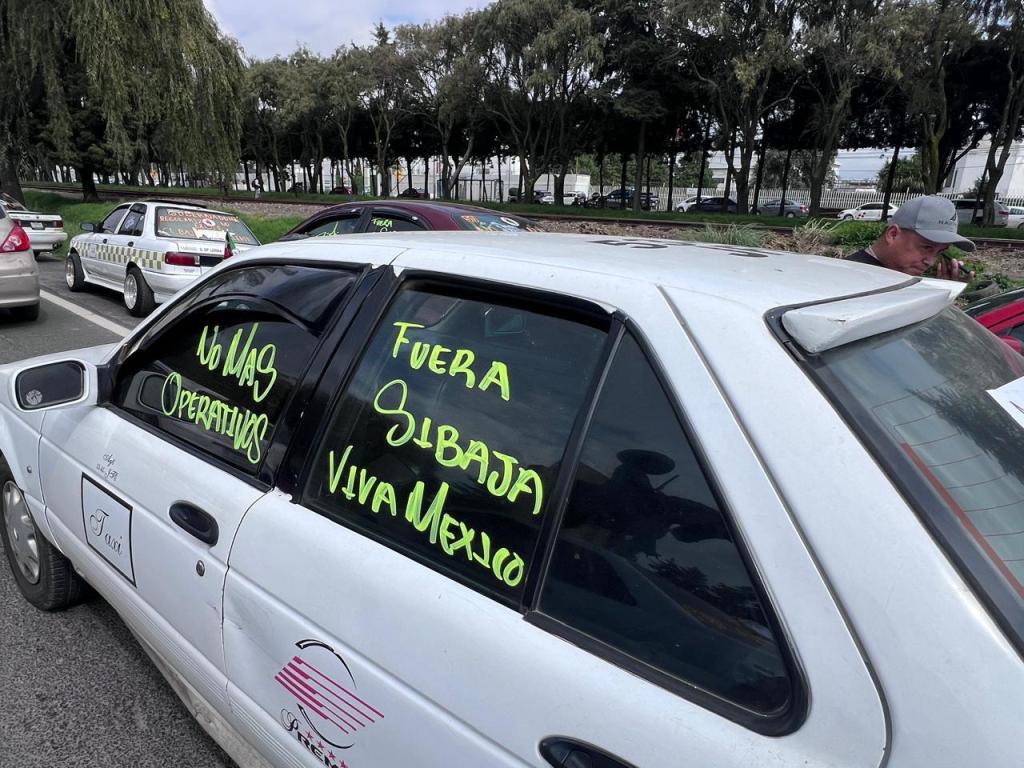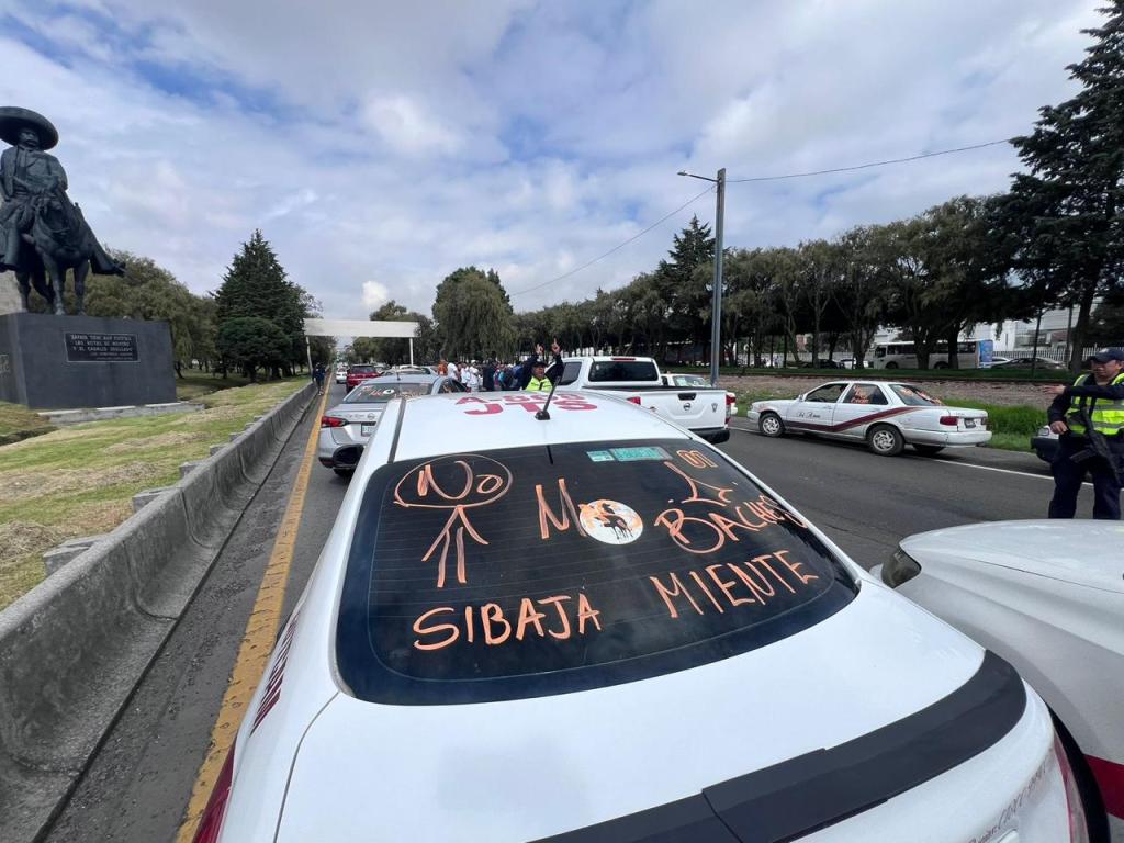 Los inconformes se concentraron a la altura de San Mateo Atenco, con sus unidades donde escribieron leyendas de protesta como: “Gobernadora Regularízate no existe Sibaja te miente”, “No más operativos Fuera Sibaja Viva México” y “No más baches, Sibaja Miente”.