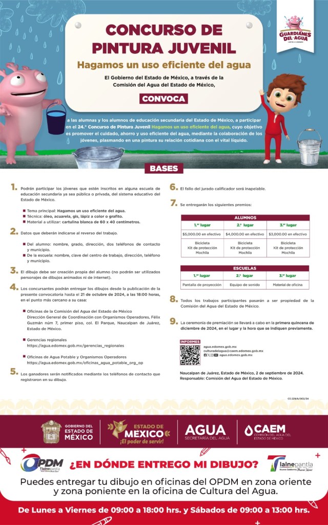 Gobierno de Tlalnepantla, CAEM y OPDM invitan al concurso de “Pintura 2024”… “Con temática de cuidado del agua”