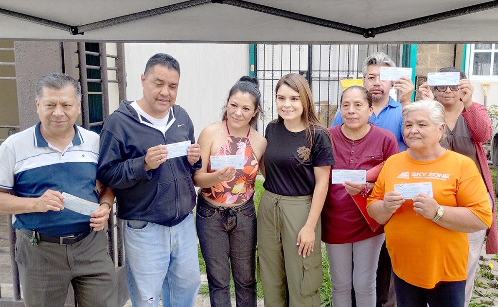 Cuautitlán, Méx.- La Presidenta Honoraria del Sistema Municipal para el Desarrollo Integral de la Familia (DIF), Mtra. Brenda Stephanie Selene Aguilar Zamora, en representación de su esposo, Aldo Ledezma Reyna, Alcalde de Cuautitlán, realizó la segunda y última entrega de apoyos (cheques) a cerca de Mil 200 personas damnificadas de 265 casas de seis privadas de la comunidad Rancho San Blas, por cerca de 2 millones 366 mil pesos, recursos propios de la administración.